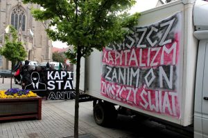 Nějakou chvíli obcházíme okolní uličky a čekáme až dorazí ostatní. Akce přecijen s menším spožděním začíná, na úvod proběhne proslov a poté se vyráží na průvod městem, který je doprovázen soundsystemem a nechybí ani skandování. Průvod končí na jednom z Katowických náměstí, kde probíhají další proslovy.